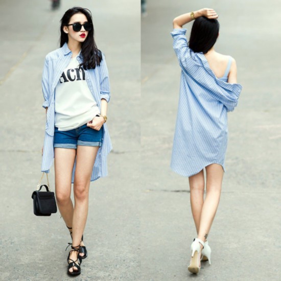 水蓝色点缀清凉夏日 时髦街拍穿出来