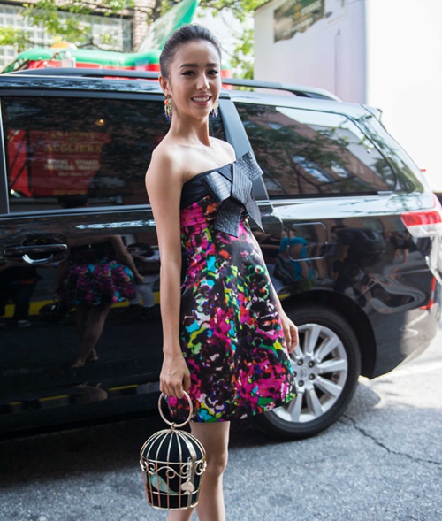 佟丽娅亮相2015春夏纽约时装周凯特·丝蓓 (kate spade new york) 展示会场外